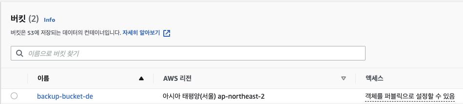 s3에서 백업 테스트를 위한 버킷을 생성합니다. 저는 버킷 안에 백업 파일이 들어갈 'folder1'라는 폴더를 생성했습니다.