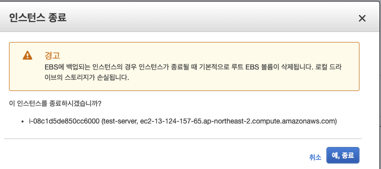 기존 인스턴스 삭제