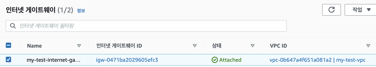 이제 VPC와 인터넷 게이트웨이가 연결되었습니다.(Attached)