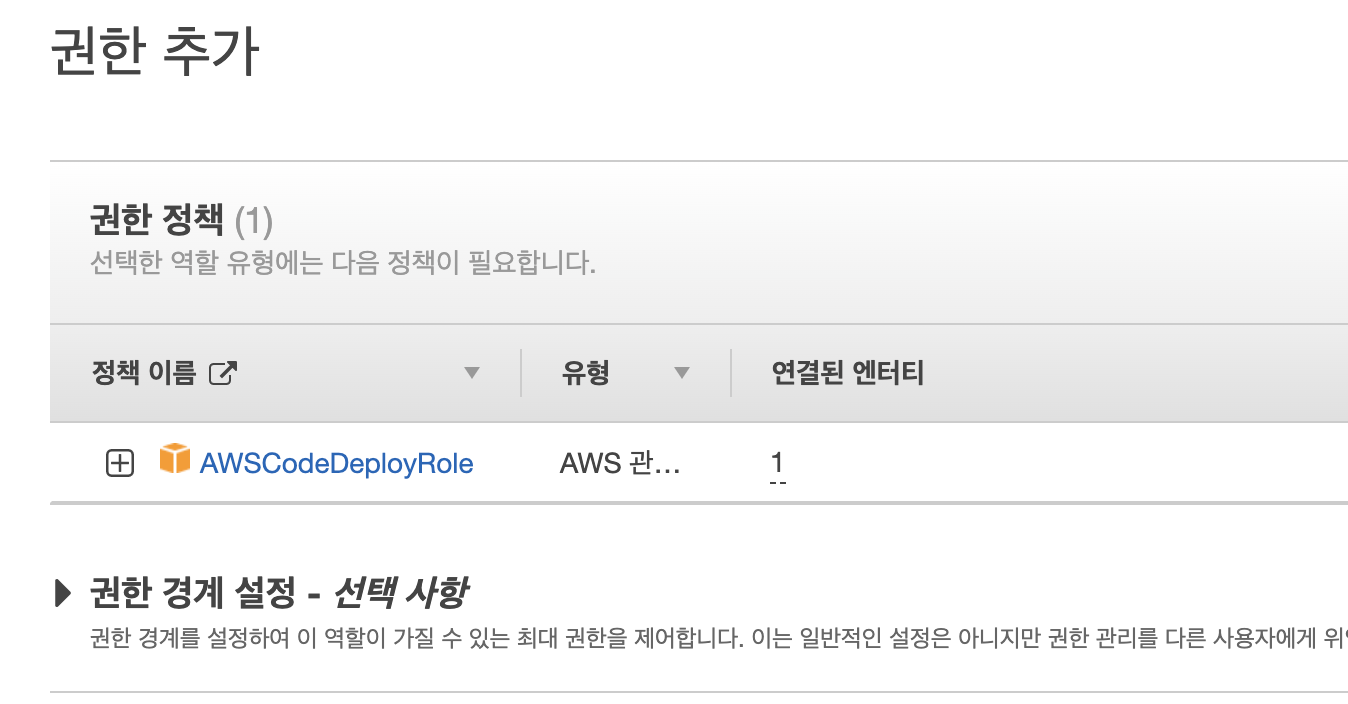 서비스 역할은 4에서 생성한 CodeDeploy용 IAM 역할을 선택하면 된다.