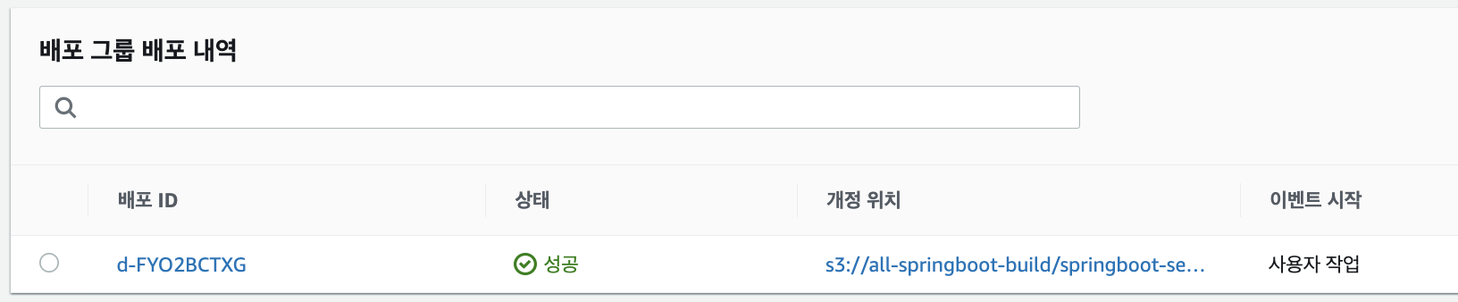 Travis CI가 끝나면 CodeDeploy 화면 아래에서 배포가 수행된 것을 확인할 수 있습니다.