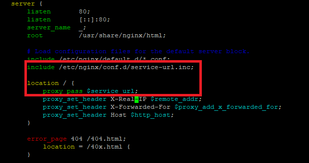 | sudo tee /ect/nginx/conf.d/service-url.inc