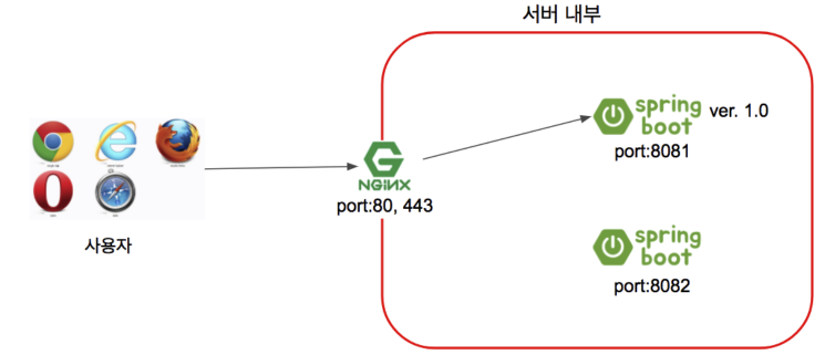- Nginx는 사용자 요청을 받아 현재 연결된 Spring boot로 요청 전달