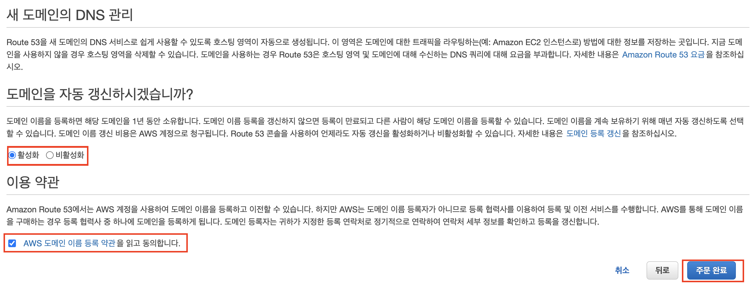 만약 도메인이 1년마다 자동갱신되는 것을 원치 않다면 비활성화를 클릭해야 합니다.