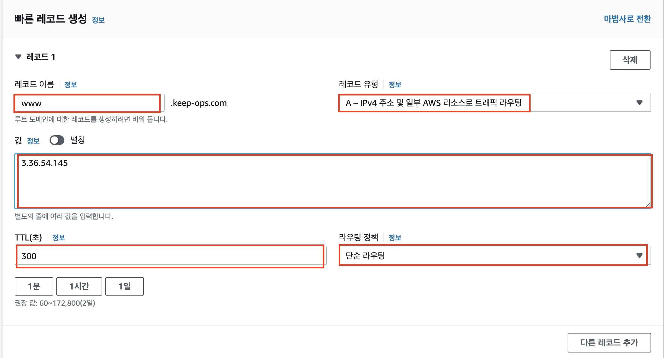 위와 같이 입력 및 선택을 한 후에 레코드 생성을 누르겠습니다.