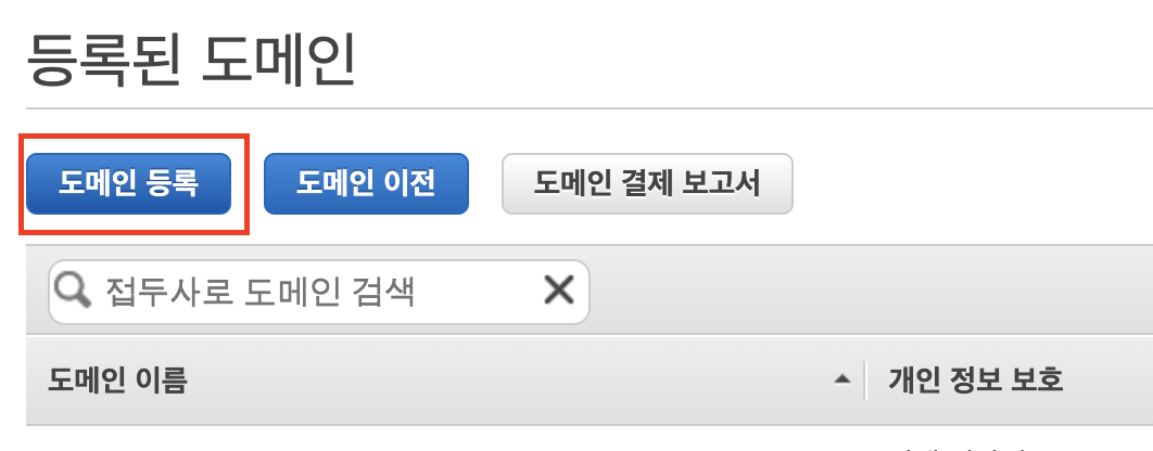 AWS Route 53으로 접속한 후에 도메인 등록 버튼을 누르겠습니다.