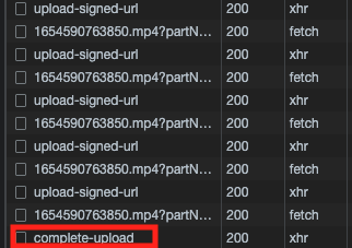 5. 마지막으로 (”POST complet-upload”)업로드 종료를 알립니다.