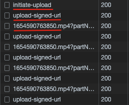 3. Part를 AWS API 서버에 업로드하는(”PUT 165**.mp4?”) 과정을 거칩니다.