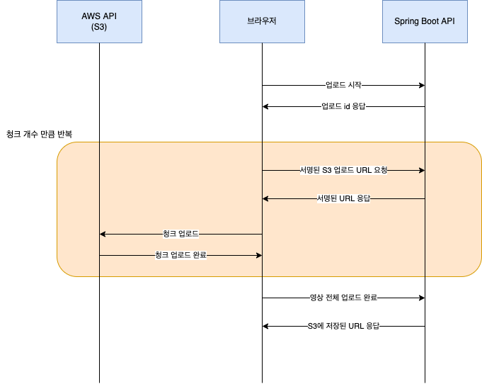 6. 모든 청크 업로드가 완료되면 Spring Boot 서버로 업로드 완료 요청을 보냅니다.