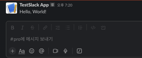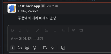 위 API를 호출하면 원하는 채널로 알림이 오는 것을 확인할 수 있습니다.