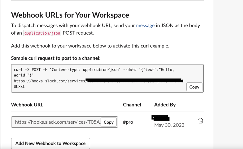 5. Webhook URLs 확인