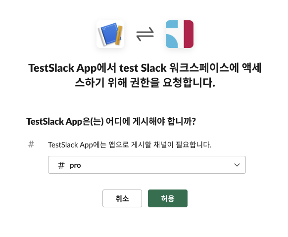 워크스페이스와 알림을 위한 채널을 선택합니다.