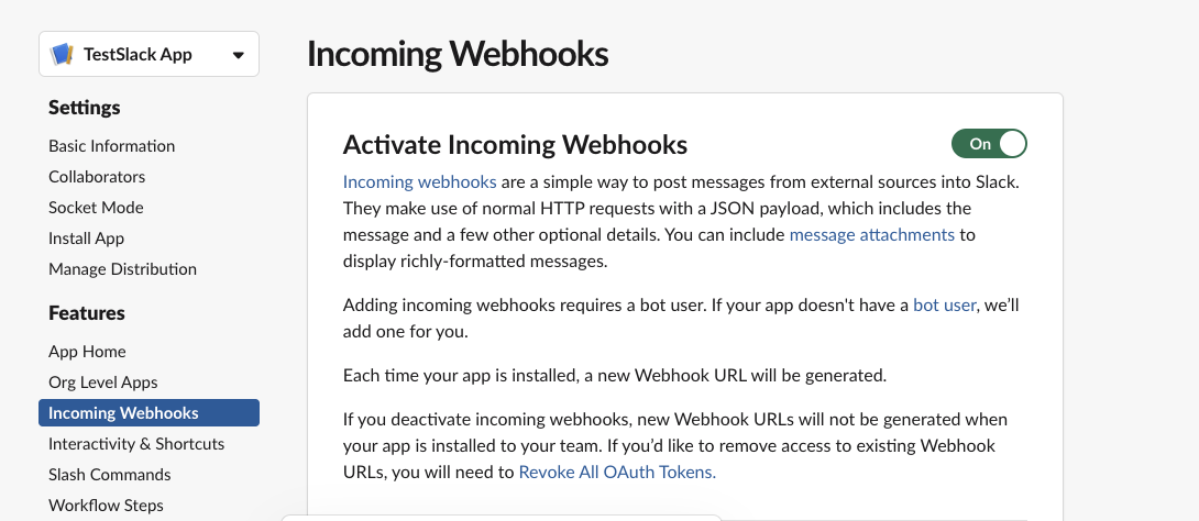 4. Incoming Webhook 활성화 시키기