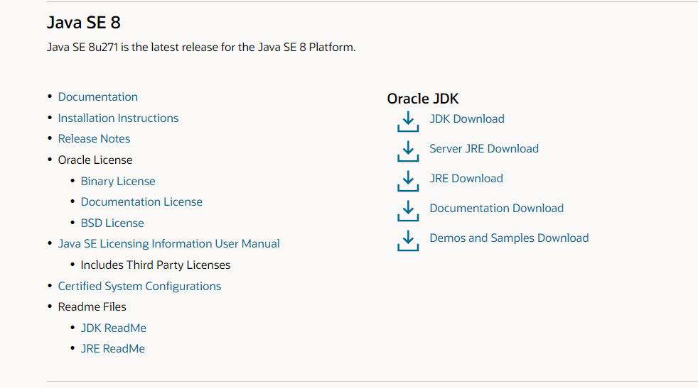 Oracle JDK -> JDK Download -> Oracle 로그인 하면 Java SE 8을 다운받을 수 있습니다.