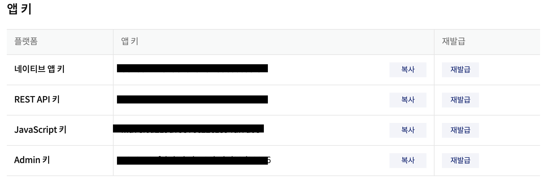 내 애플리케이션을 만들었으면 다음 텝에서 앱 키를 확인할 수 있습니다.