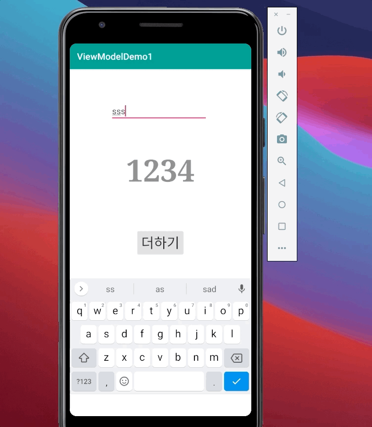 viewmodel을 사용한 간단한 더하기 예제를 만든 결과입니다.