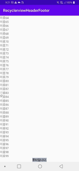 리사이클러뷰에 헤더와 푸터를 달아서 보여주는 리스트가 무엇을 의미하는지 알 수 있습니다.