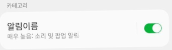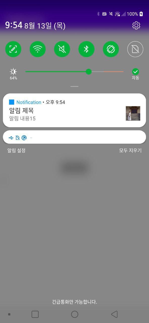 진동, 소리 뿐만 아니라 다음 이미지처럼 위에서 내려오는(헤드업) 알람을 보낼 수 있다.
